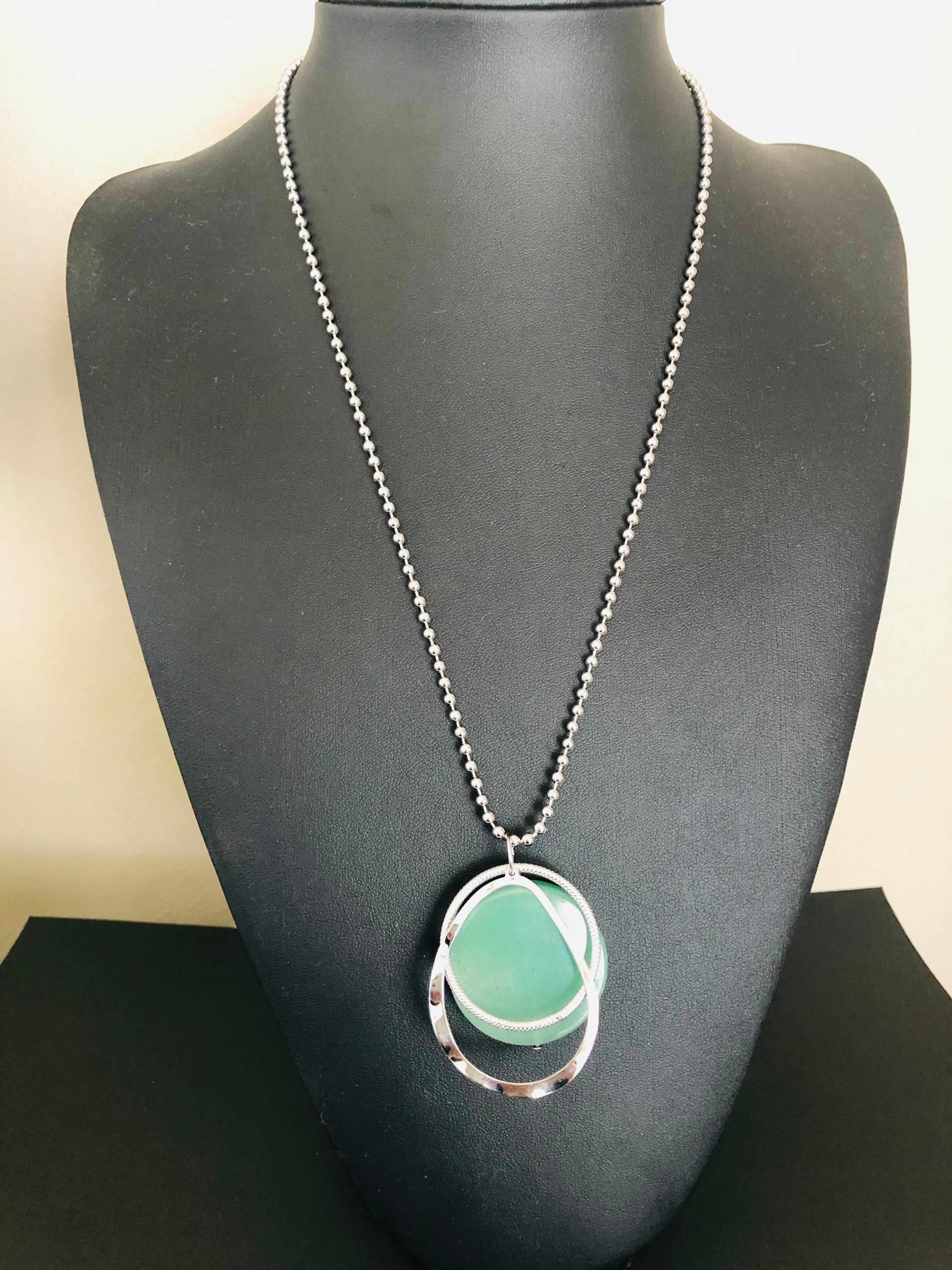 シルバーカラーのロジウムパーツとグリーンアベンチュリンのネックレス