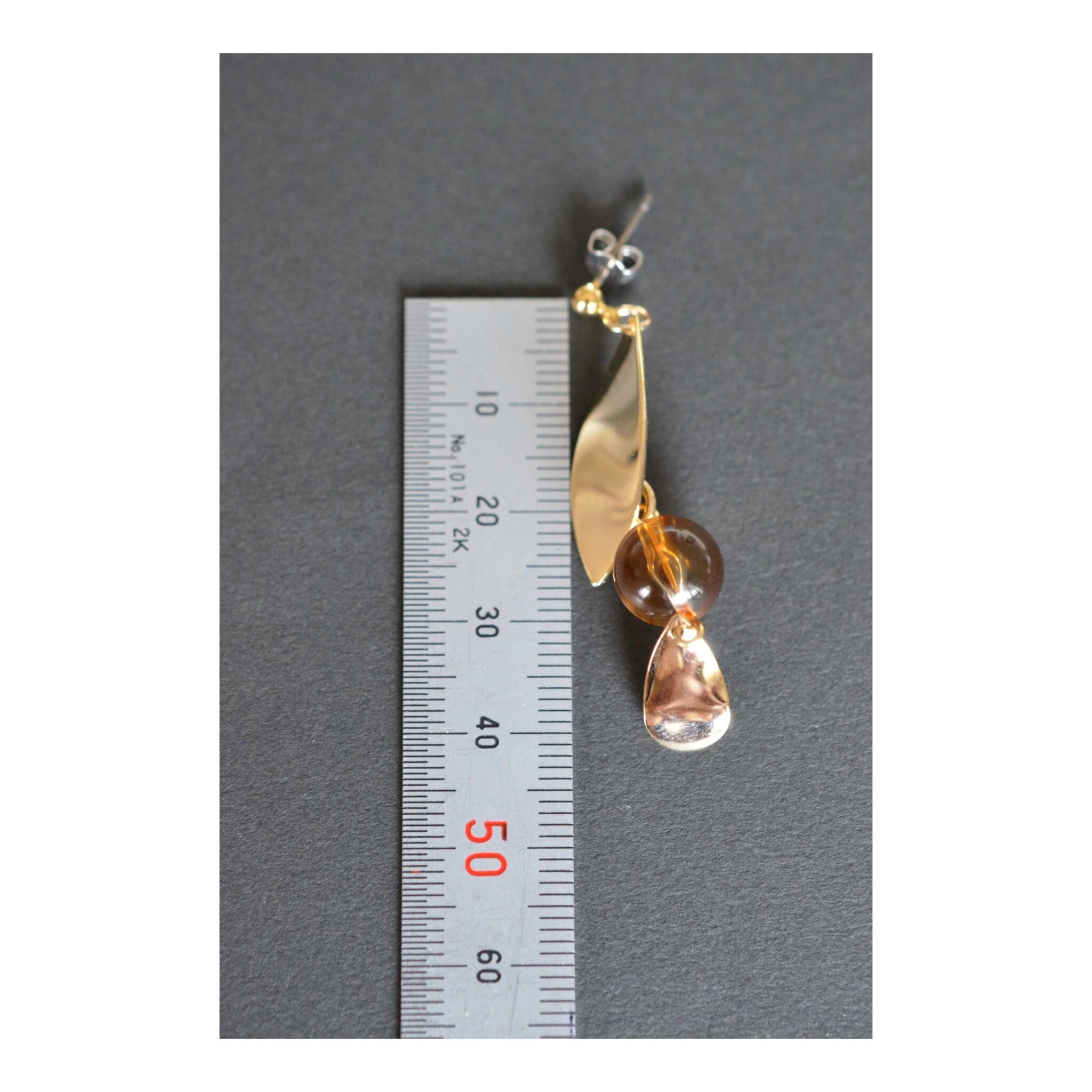 琥珀色のプラビーズが美しいピアスです。