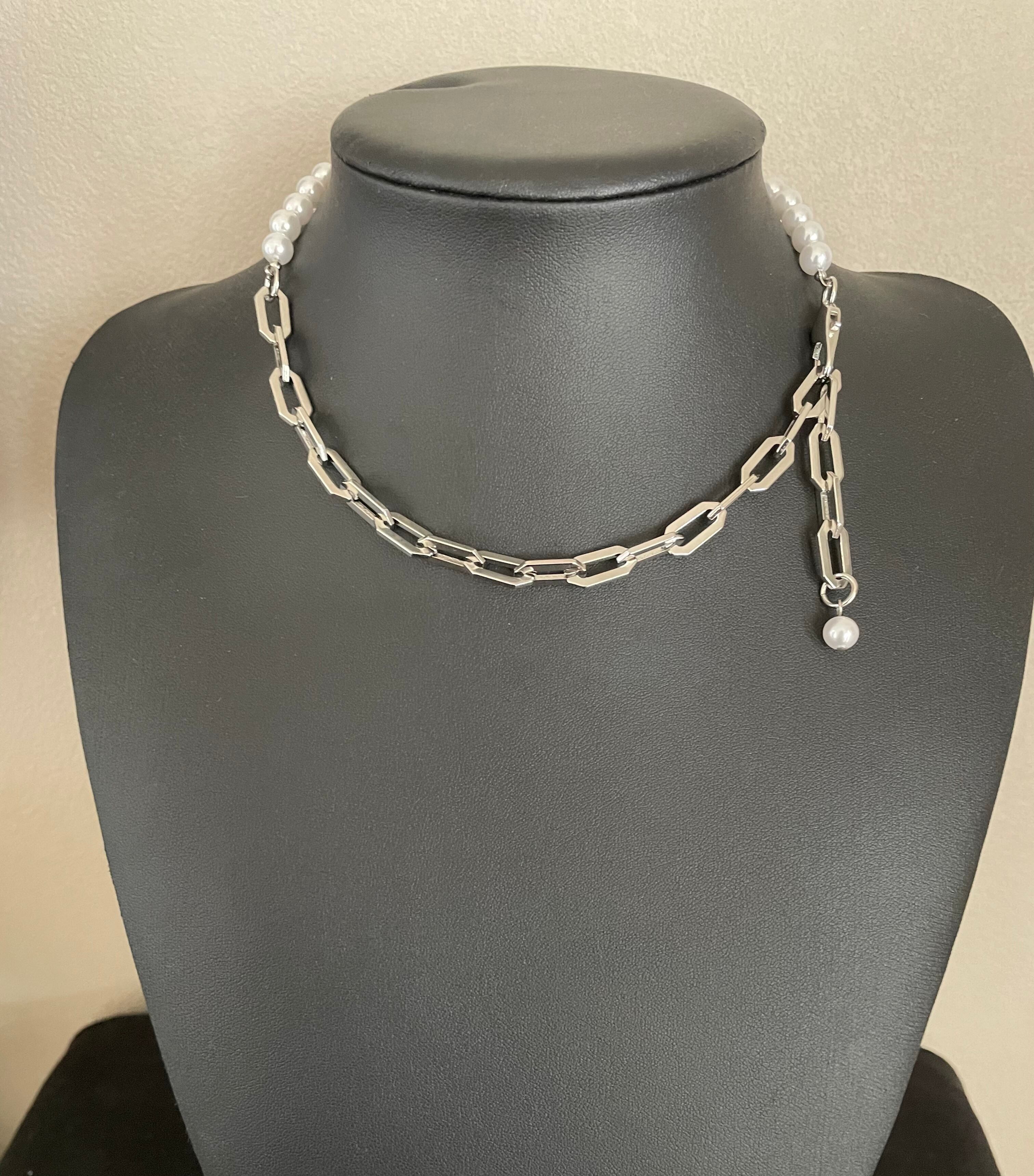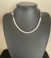 樹脂パールとスタイリッシュなチェーンのショートネックレス