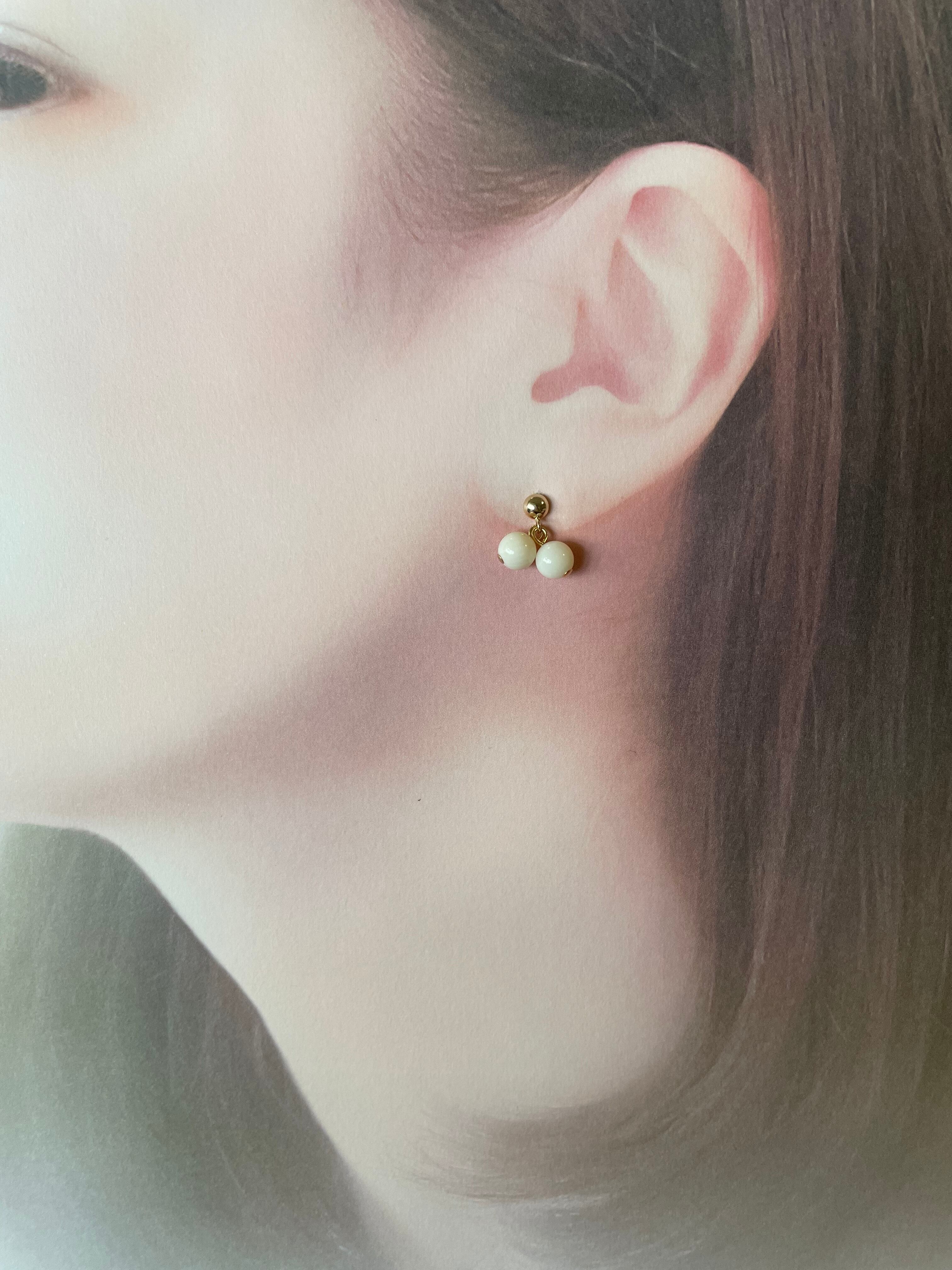 白珊瑚の2粒ピアス