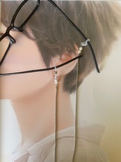 メガネのフレームにゴムのパーツを通したら、ゴムの真ん中の金具を上下してフレームにアジャストさせると外れにくいです。