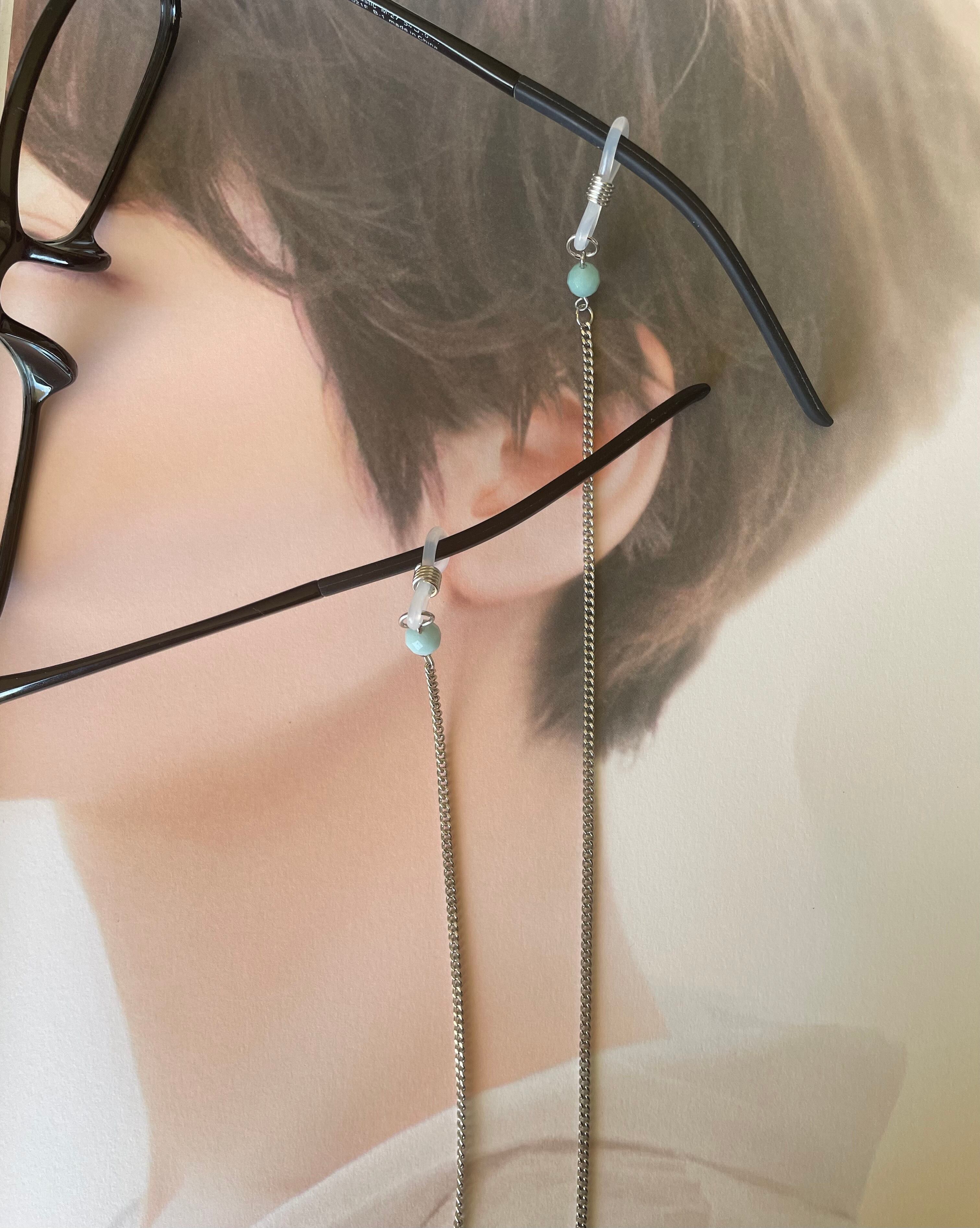 アマゾナイトがポイントとなり、平たいチェーンがスタイリッシュな印象です。