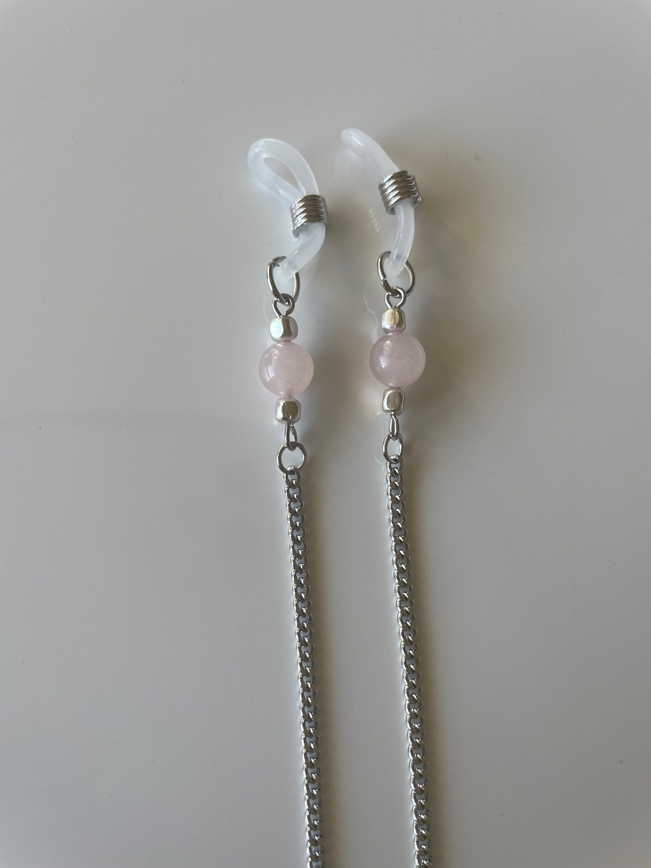 ピンククオーツポイントとなり、平たいチェーンがスタイリッシュな印象です。